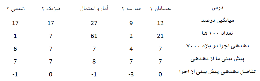 در این قسمت، بعد از برگزاری هر آزمون در مورد سطح دشواری آن به شما گزارش میدهیم و آن را با پیش‌بینی خودمان مقایسه میکنیم. جدول زیر بخوبی بیانگر این موضوع است.