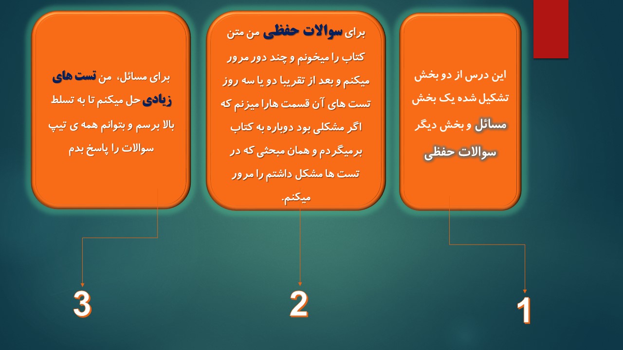 روش مطالعه دوم از سحر حسن زاده است. روش مطالعه ایشان به صورت فایل صوتی بوده که وویس ایشان حاوی نکات بسیار مفیدی است که پیشنهاد می شود حتما گوش کنید.