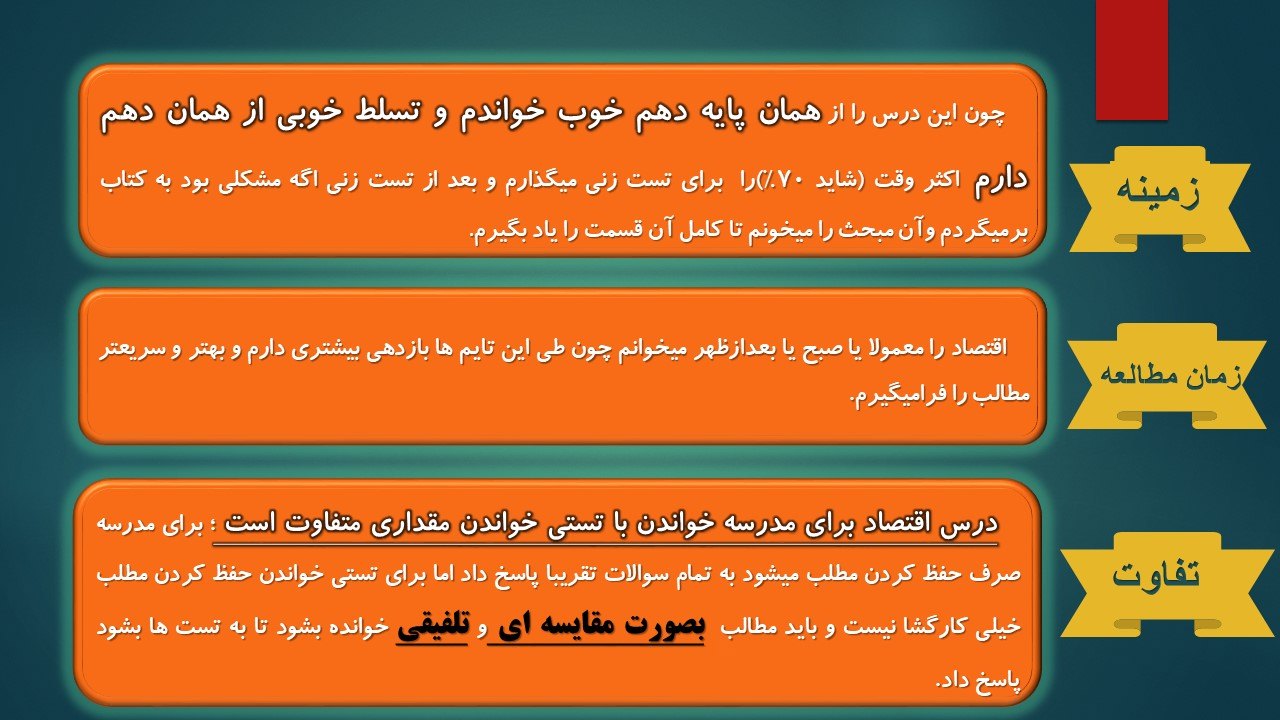 (همچنین میتوانید روش مطالعه خود را مربوط به درس اقتصاد، با دوستانتان به اشتراک بگذارید)