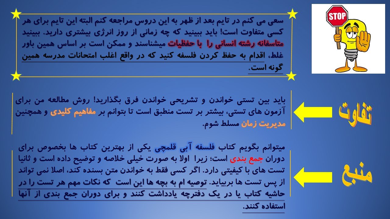 شما این درس را چگونه مطالعه می کنید؟! آیا در مطالعه این درس روش خاصی دارید ؟! در قسمت کامنت ها یادداشت کنید.