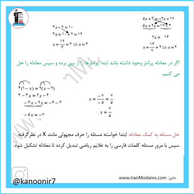 نکات مهم مبحث جبر و معادله (ریاضی هفتم)
