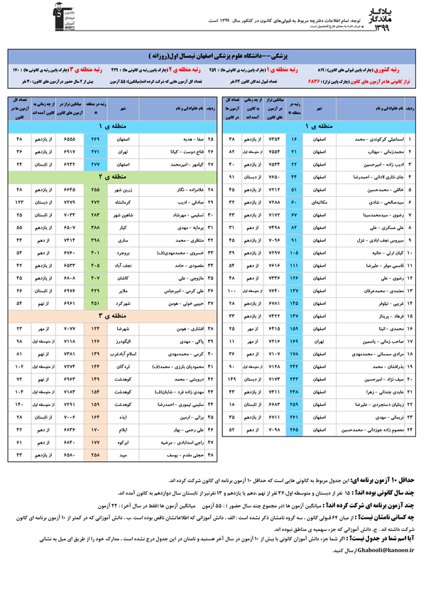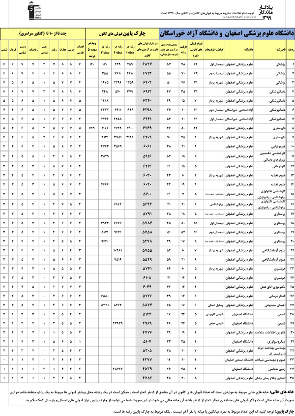 یادگار ماندگار : قبولی های کانونی دانشگاه صنعتی اصفهان ، دانشگاه اصفهان ، دانشگاه علوم پزشکی اصفهان ، دانشگاه آزاد خوارسگان و دانشگاه هنر در همه رشته ها در سال 99 را در ادامه مشاهده کنید.
