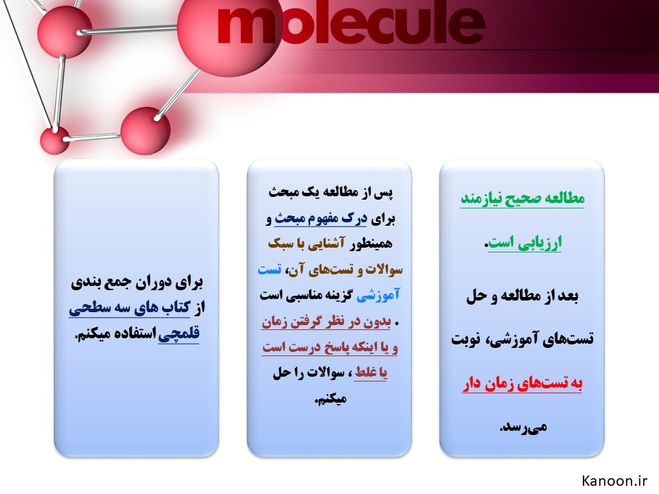 شما شیمی را چگونه مطالعه می کنید؟! آیا در مطالعه این درس روش خاصی دارید ؟! در قسمت کامنت ها یادداشت کنید.