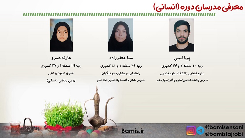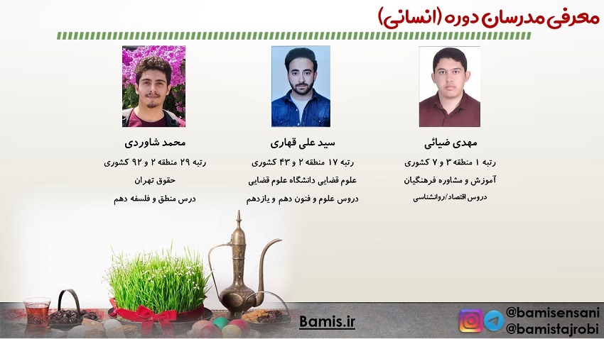 مدرسان این دوره پشتیبانان ویژه کانون و رتبه های برتر کنکور هستند.