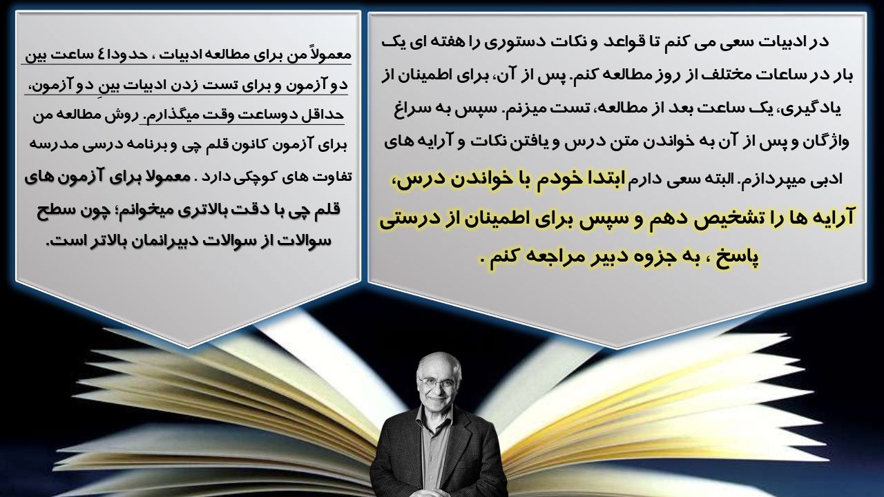 شما ادبیات را چگونه مطالعه می کنید؟! آیا در مطالعه این درس روش خاصی دارید ؟! در قسمت کامنت ها یادداشت کنید.