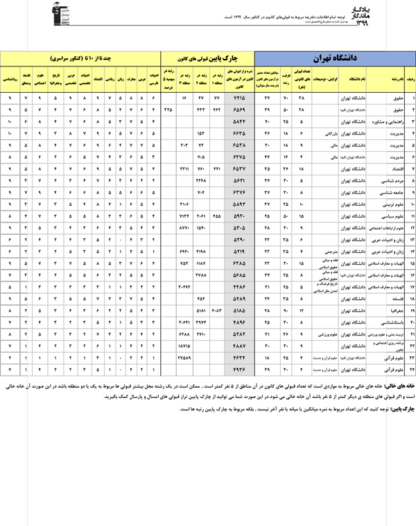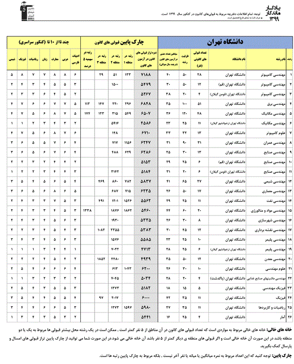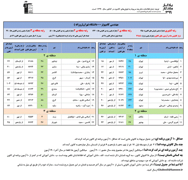یادگار ماندگار : قبولی های کانونی دانشگاه تهران در همه رشته ها در سال 99 را در ادامه مشاهده کنید.فایل با کیفیت قبولی های سال 99 را در قسمت فایل های ضمیمه دانلود کنید.