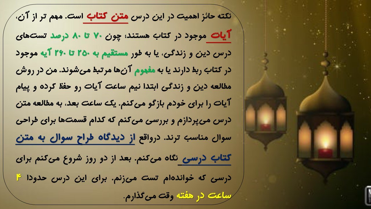 شما دینی را چگونه مطالعه می کنید؟! آیا در مطالعه این درس روش خاصی دارید ؟! در قسمت کامنت ها یادداشت کنید.