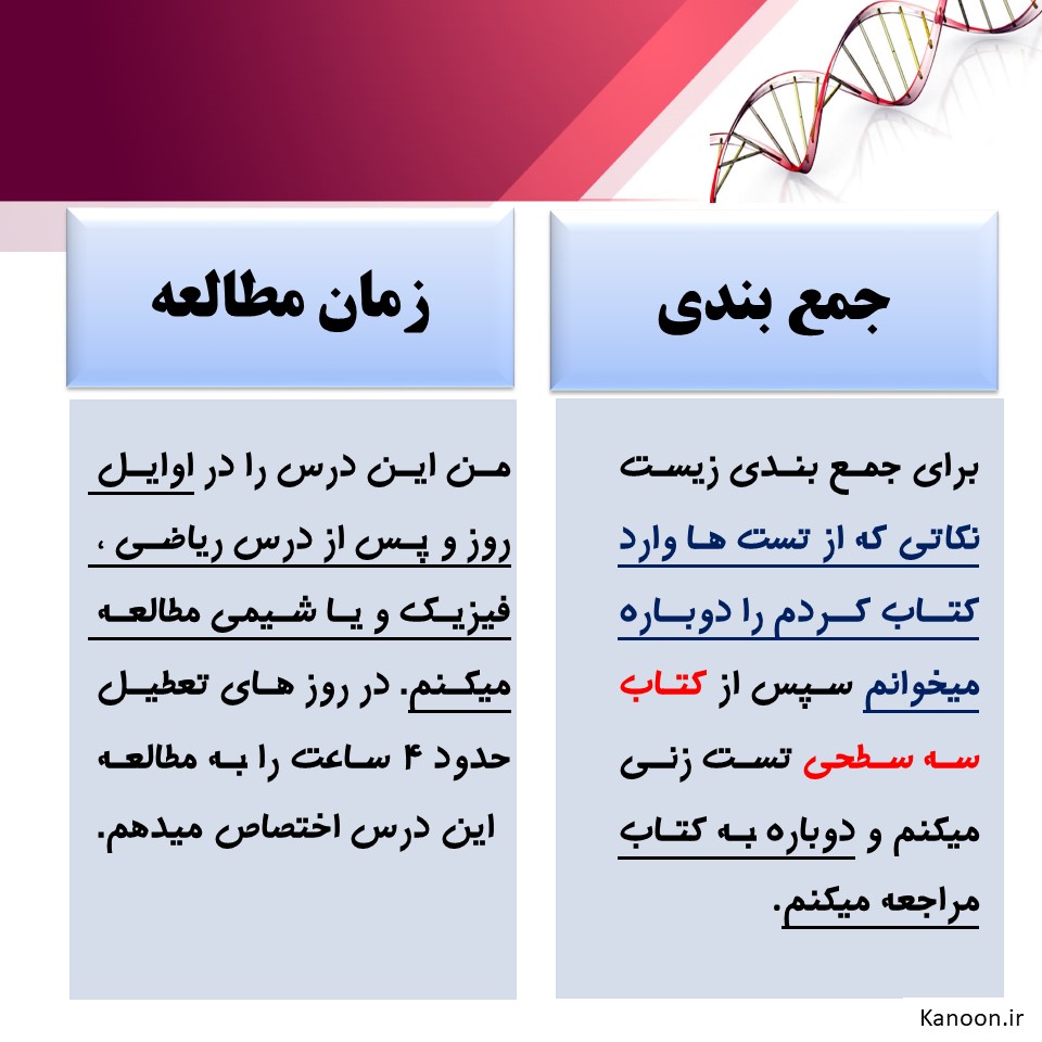 شما زیست را چگونه مطالعه می کنید؟! آیا در مطالعه این درس روش خاصی دارید ؟! در قسمت کامنت ها یادداشت کنید.