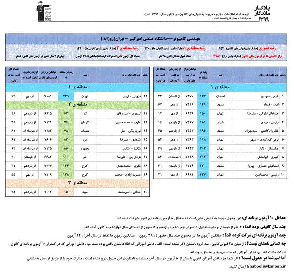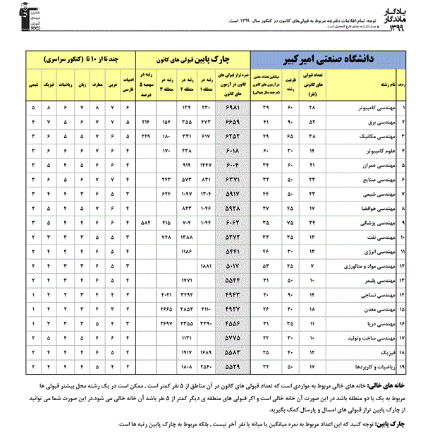 یادگار ماندگار : قبولی های کانونی دانشگاه صنعتی امیرکبیر در همه رشته ها در سال 99 را در ادامه مشاهده کنید.فایل با کیفیت قبولی های سال 99 را در قسمت فایل های ضمیمه دانلود کنید.