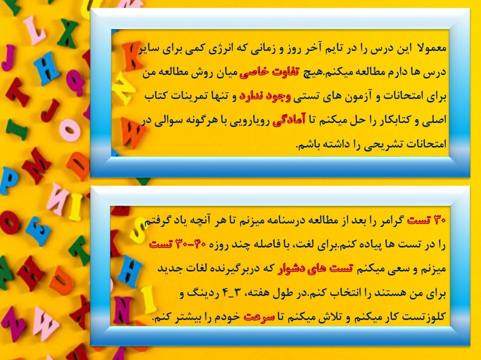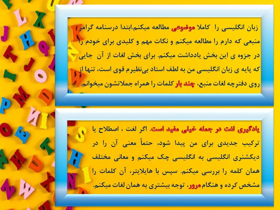 شما زبان انگلیسی را چگونه مطالعه می کنید؟! آیا در مطالعه این درس روش خاصی دارید ؟! در کامنت ها برای ما بنویسید.
