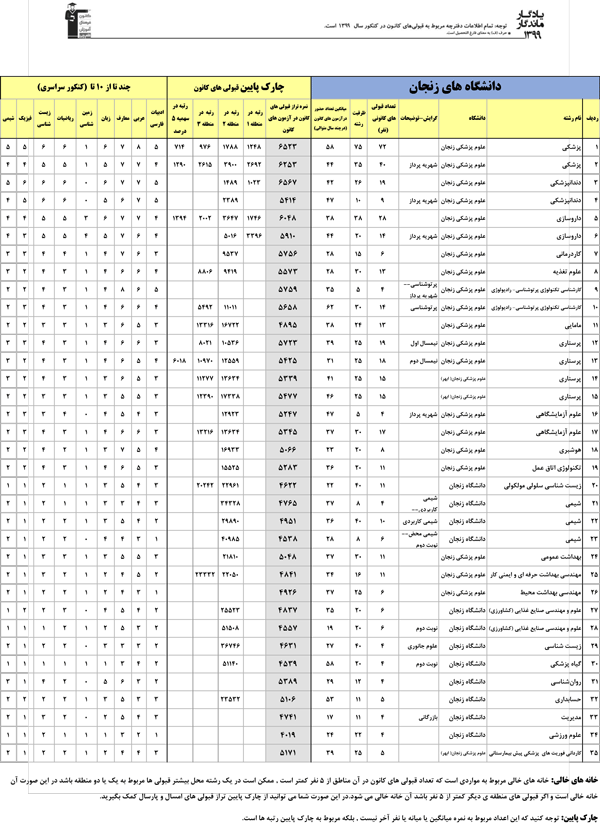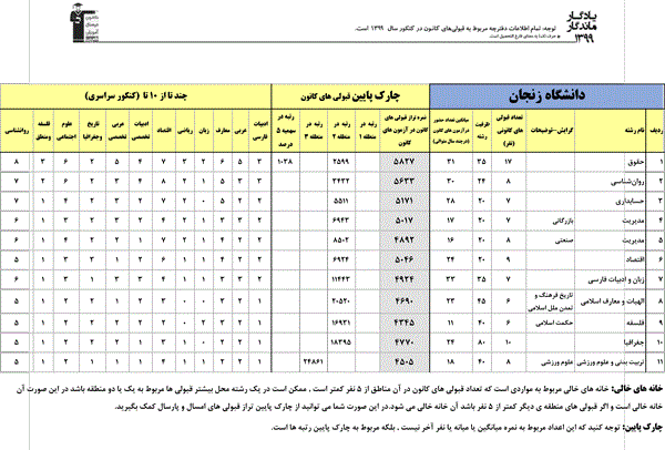 یادگار ماندگار: قبولیهای کانونی دانشگاههای زنجان در سال 99