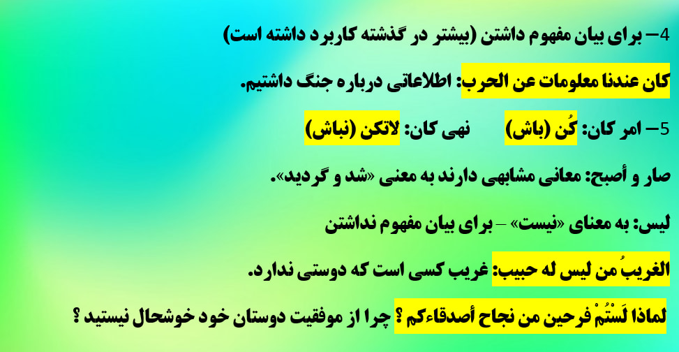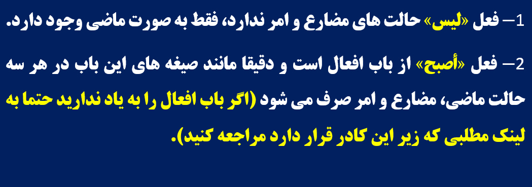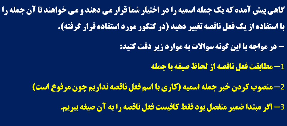 در این مطلب کاملا مختصر نکات ضروری و مهم افعال ناقصه بیان شده و هر مورد با مثال توضیح داده شده است.