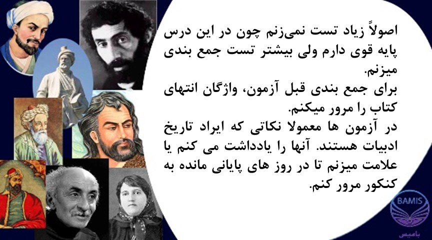 در این مطلب نیما طاهریان از شهر شهریار با میانگین درصد 87 در درس ادبیات، روش مطالعه خود را در این درس توضیح میدهد.