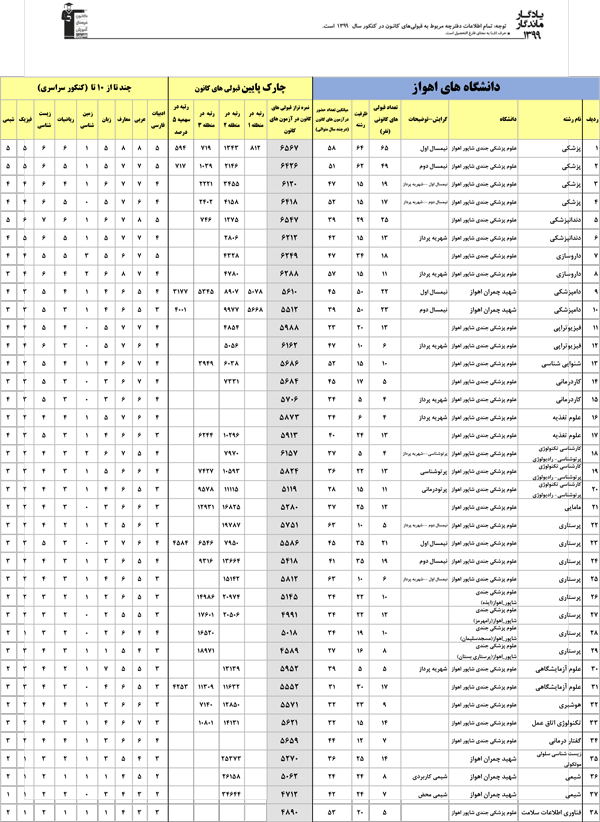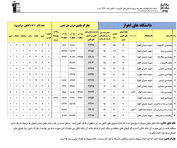 یادگار ماندگار : قبولی های کانونی دانشگاه علوم پزشکي جندي شاپور اهواز ، دانشگاه شهيد چمران اهواز ، دانشگاه صنعت نفت (اهواز) و دانشگاه علوم کشاورزي ومنابع طبيعي خوزستان-ملاثاني اهواز در همه رشته ها در سال 99 را در ادامه مشاهده کنید.