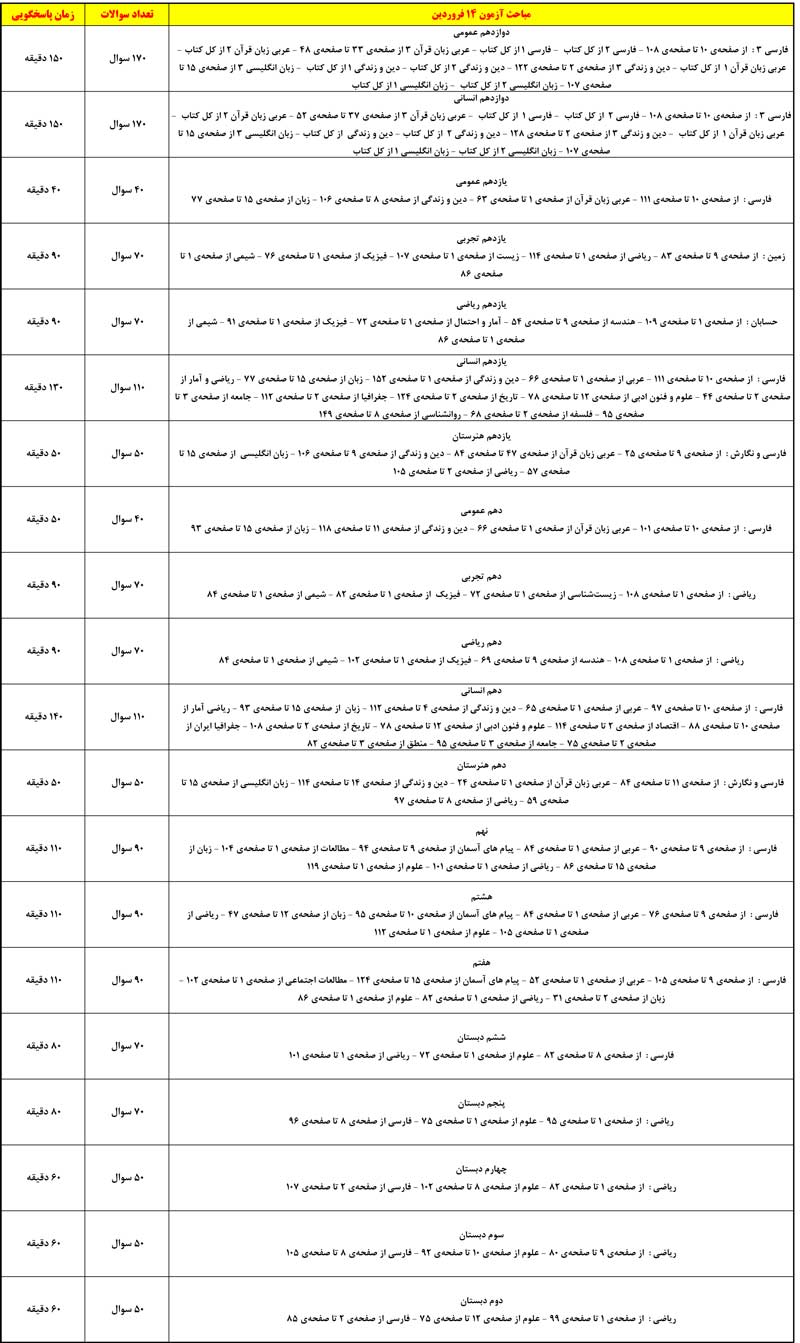 در تاریخ 14 فروردین برای دانش آموزان دوازدهمی و کنکوری یک آزمون ویژه دروس عمومی برگزار خواهد شد.
