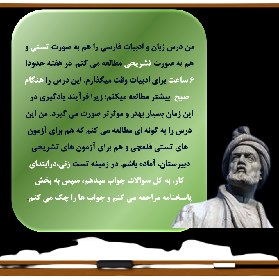 شما این درس را چگونه مطالعه می کنید؟! آیا در مطالعه این درس روش خاصی دارید ؟! در قسمت کامنت ها یادداشت کنید.