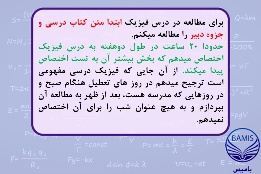 روش های مطالعه فیزیک دو دانش آموز برتر دیگر را نیز در لینک های زیر مشاهده میکنید.