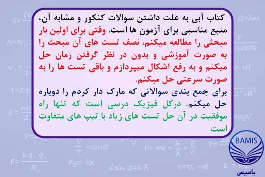 روش مطالعه فیزیک: امیررضا کیوانلو بامیانگین درصد 85