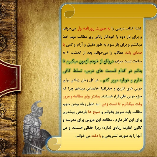 شما تاریخ و جغرافیا را چگونه مطالعه می کنید؟! آیا در مطالعه این درس روش خاصی دارید ؟! در قسمت کامنت ها یادداشت کنید.