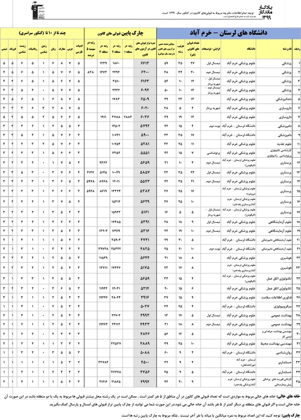 یادگار ماندگار : قبولی های کانونی دانشگاه علوم پزشکی لرستان - خرم آباد و دانشگاه لرستان - خرم آباد در همه رشته ها در سال 99 را در ادامه مشاهده کنید.فایل با کیفیت قبولی های سال 99 را در قسمت فایل های ضمیمه دانلود کنید.