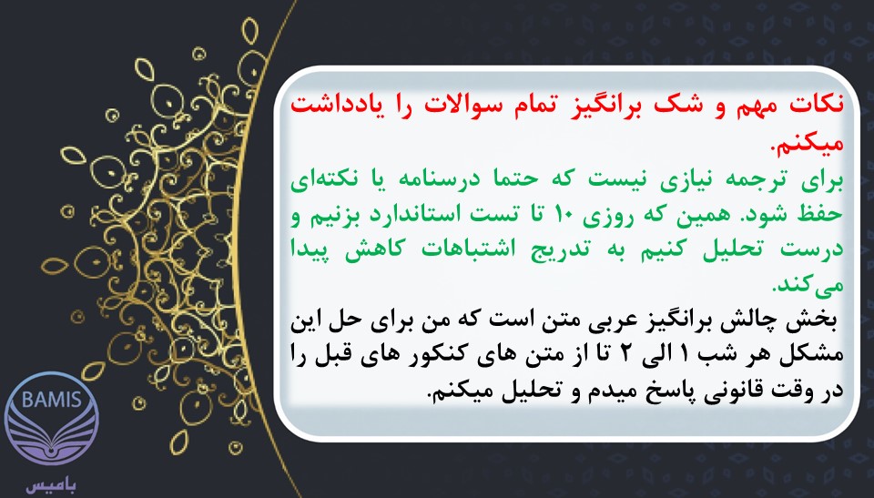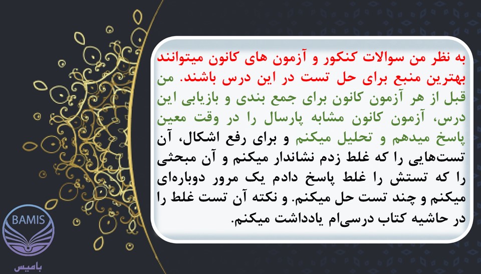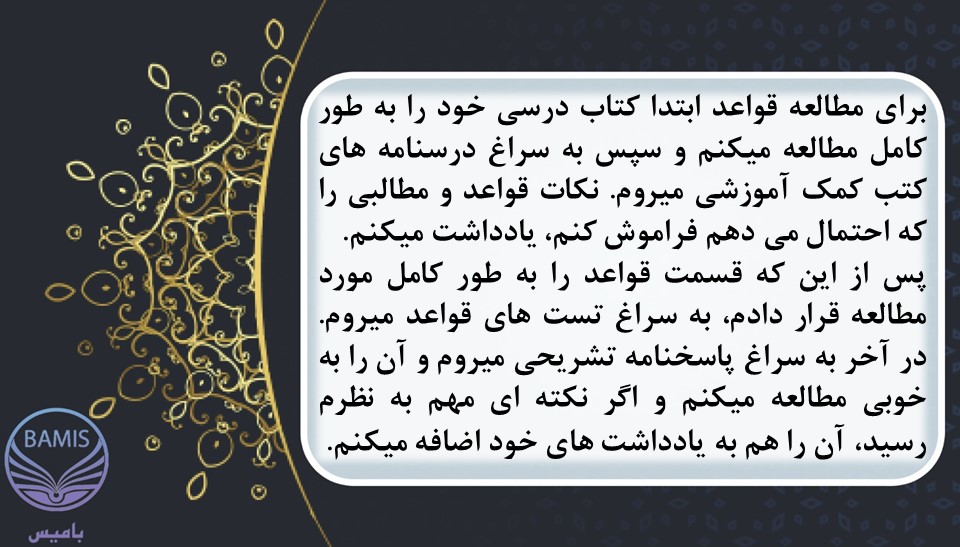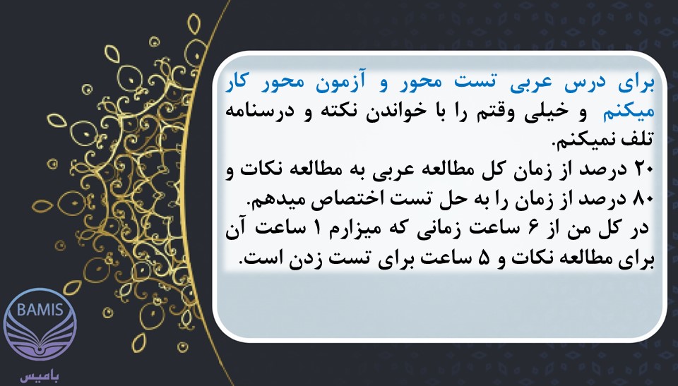 در این مطلب سبحان قاغایی از شهر میاندوآب با میانگین درصد 96 در درس عربی، روش مطالعه خود را در این درس توضیح میدهد.