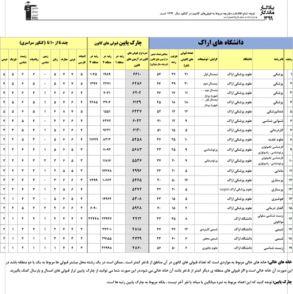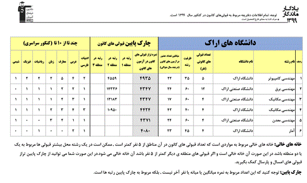یادگار ماندگار : قبولی های کانونی دانشگاه علوم پزشکی اراک و دانشگاه صنعتي اراک و دانشگاه اراک در همه رشته ها در سال 99 را در ادامه مشاهده کنید.فایل با کیفیت قبولی های سال 99 را در قسمت فایل های ضمیمه دانلود کنید.