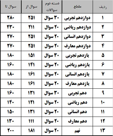 شماره سوالات دسته دوم در جدول زیر قابل مشاهده است.
