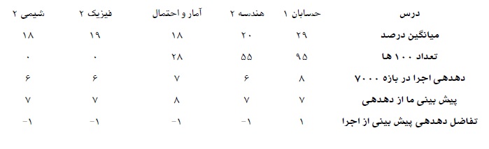 در این قسمت، بعد از برگزاری هر آزمون در مورد سطح دشواری آن به شما گزارش میدهیم و آن را با پیش‌بینی خودمان مقایسه میکنیم. جدول زیر بخوبی بیانگر این موضوع است.
