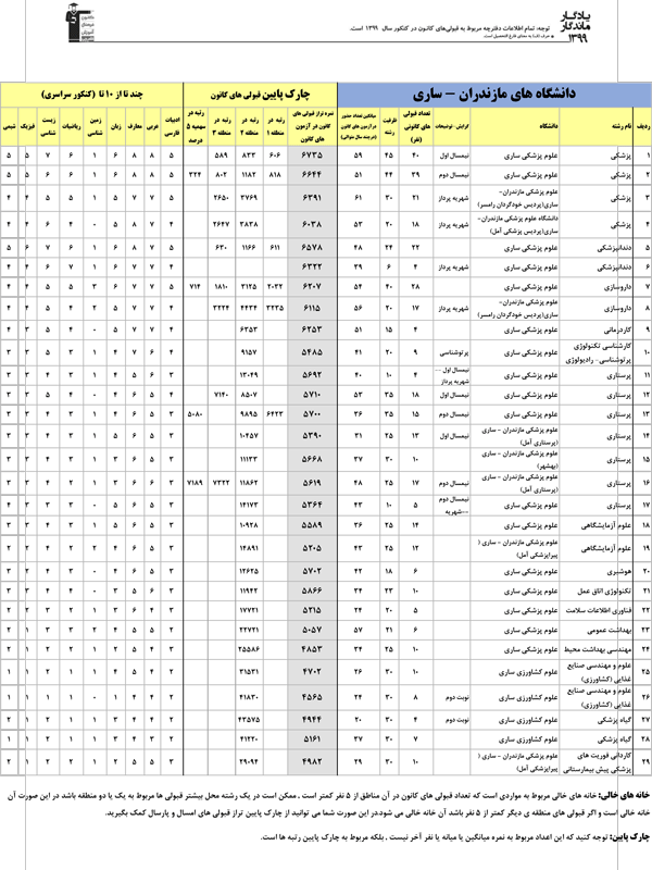 یادگار ماندگار : قبولی های کانونی دانشگاه علوم پزشکی مازندران - ساری و دانشگاه علوم کشاورزي ساري در همه رشته ها در سال 99 را در ادامه مشاهده کنید.فایل با کیفیت قبولی های سال 99 را در قسمت فایل های ضمیمه دانلود کنید.