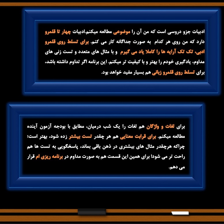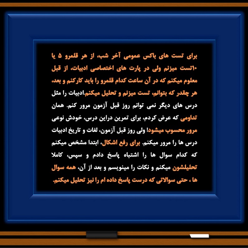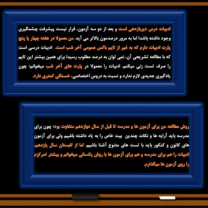 خانم مبینا منظوری رتبه 51 منطقه دو کنکور انسانی 1400 از بجنورد روش مطالعه خود را (کلکسیون روش مطالعه) در درس ادبیات با شما به اشتراک گذاشته است.