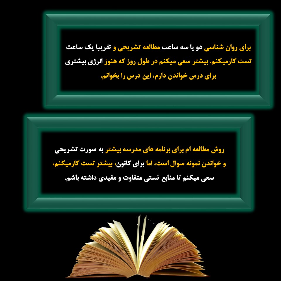 شما روانشناسی را چگونه مطالعه می کنید؟! آیا در مطالعه این درس روش خاصی دارید ؟! در قسمت کامنت ها یادداشت کنید.