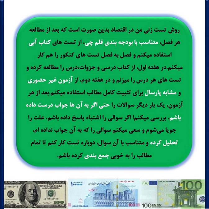شما اقتصاد را چگونه مطالعه می کنید؟! آیا در مطالعه این درس روش خاصی دارید ؟! در قسمت کامنت ها یادداشت کنید.