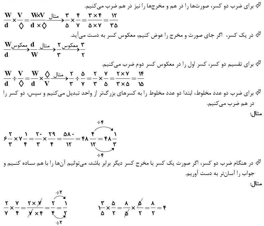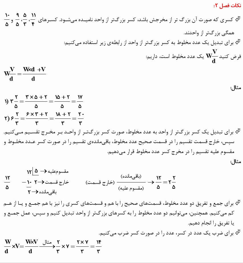 درسنامه فصل دوم ریاضی پنجم دبستان ( کسر)