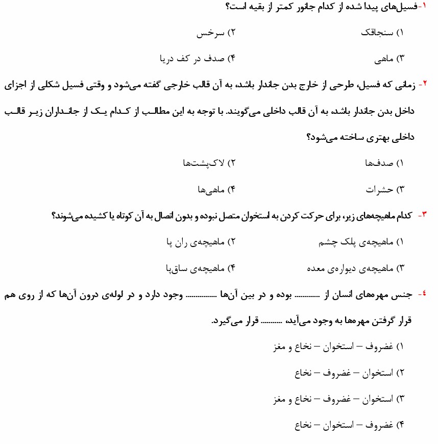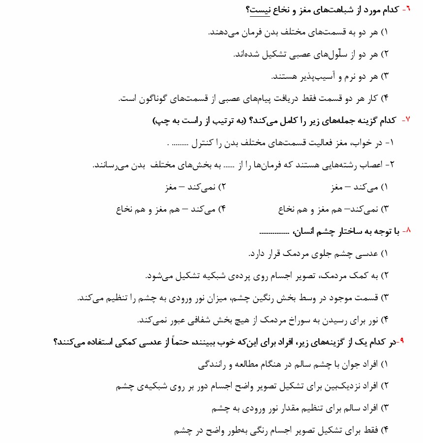 نمونه سوالات علوم پنجم دبستان (4)+ پاسخ کانون قلمچی
