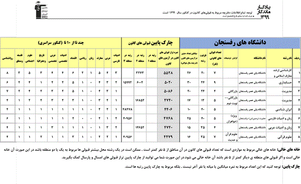 یادگار ماندگار: قبولیهای کانونی دانشگاههای رفسنجان در سال 99