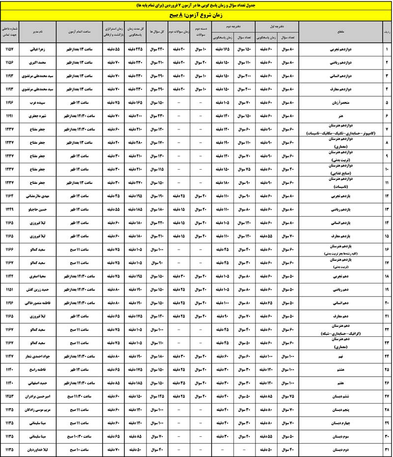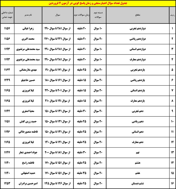 سوالات دسته دوم برای گروه های پایه ساعت 11 و برای گروه های کنکوری ساعت 12 فعال خواهد شد.