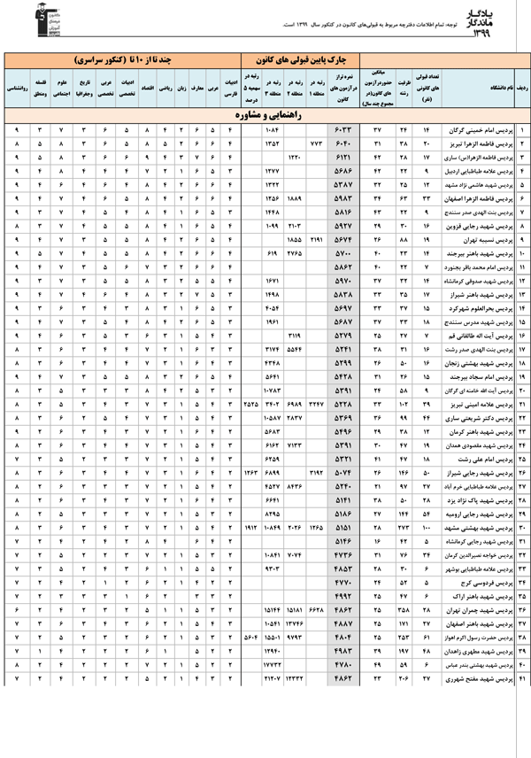 یادگار ماندگار 99 : قبولی های کانونی دانشگاه های فرهنگیان در همه رشته ها در سال 99 را در جدول زیر مشاهده کنید.