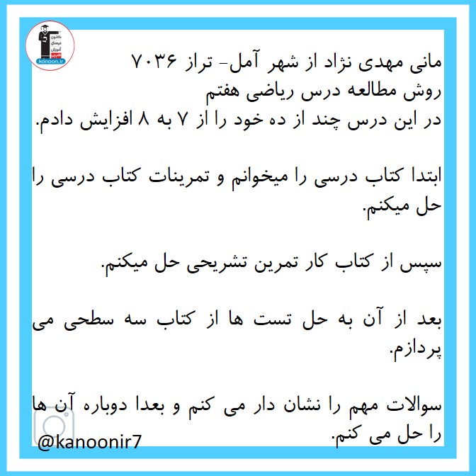 مطالعه ریاضی هفتم - ریاضی هفتم - روش مطالعه دانش آموزان برتر