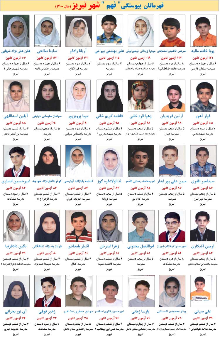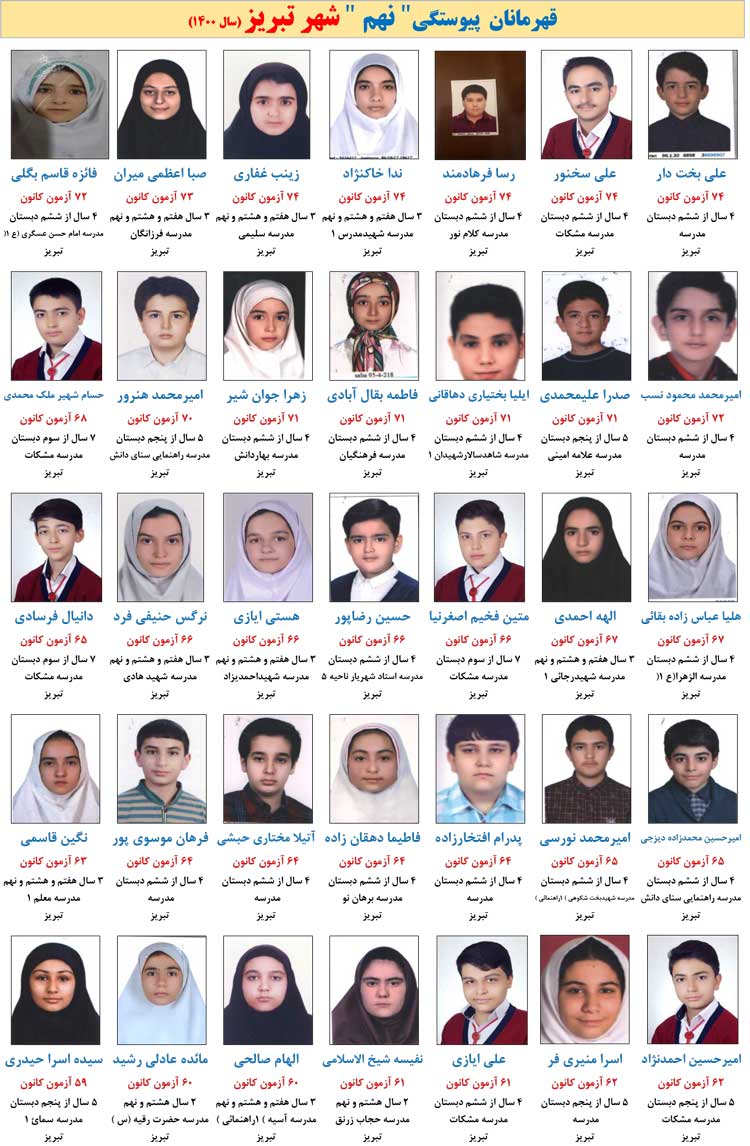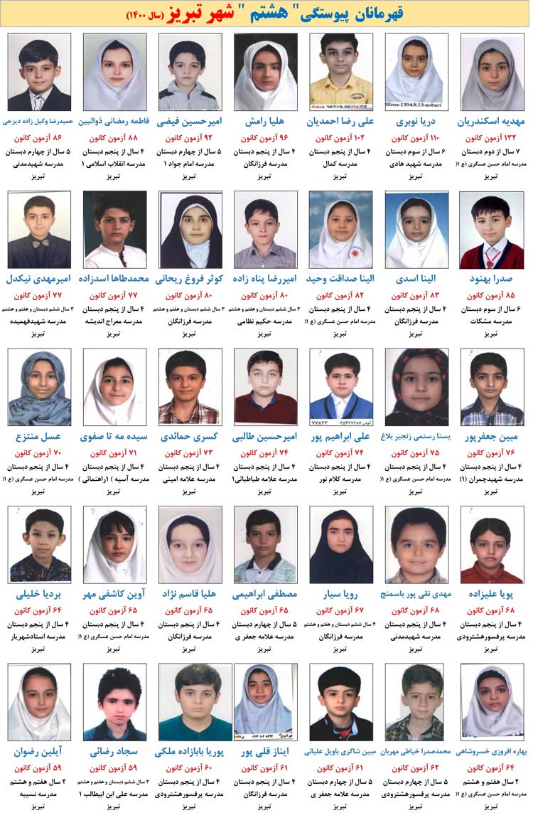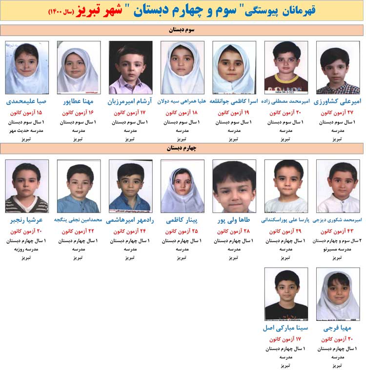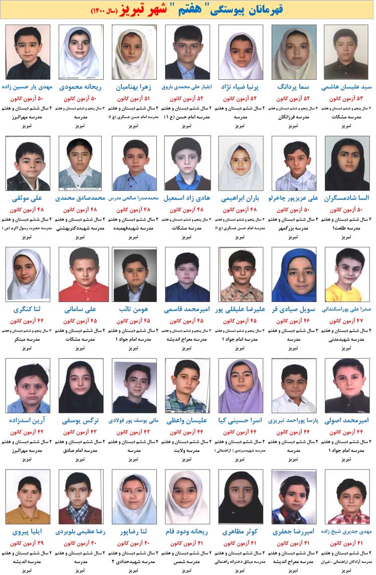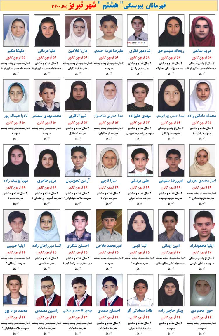 این دانش آموزان در بیش از 15 آزمون کانون حضور داشته اند . لیست اعلام شده مربوط به گروه های نهم ، هشتم ، هفتم و دبستان است.