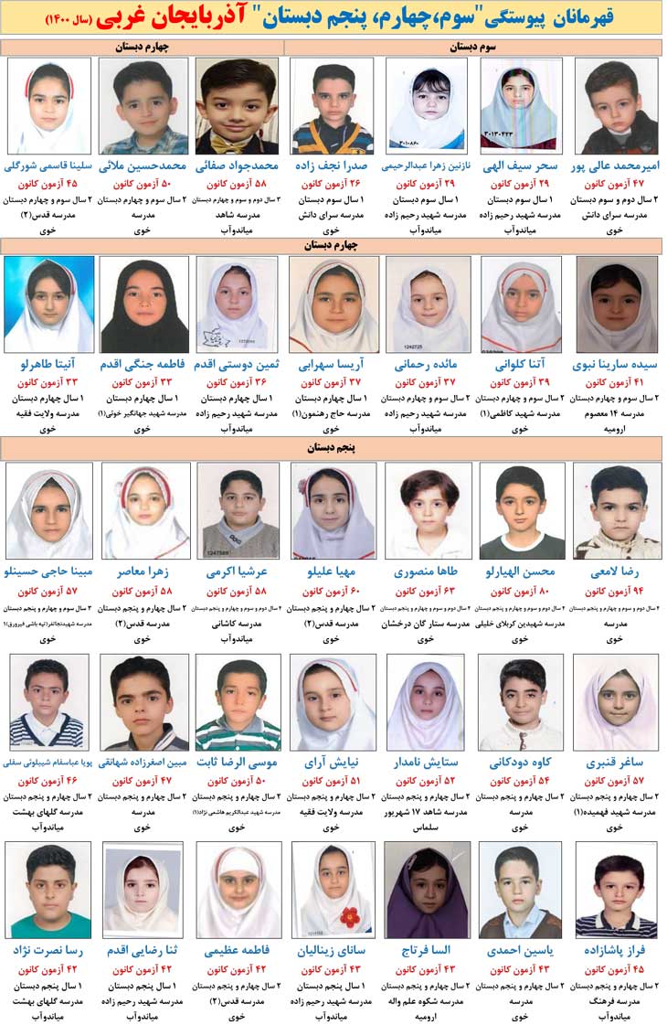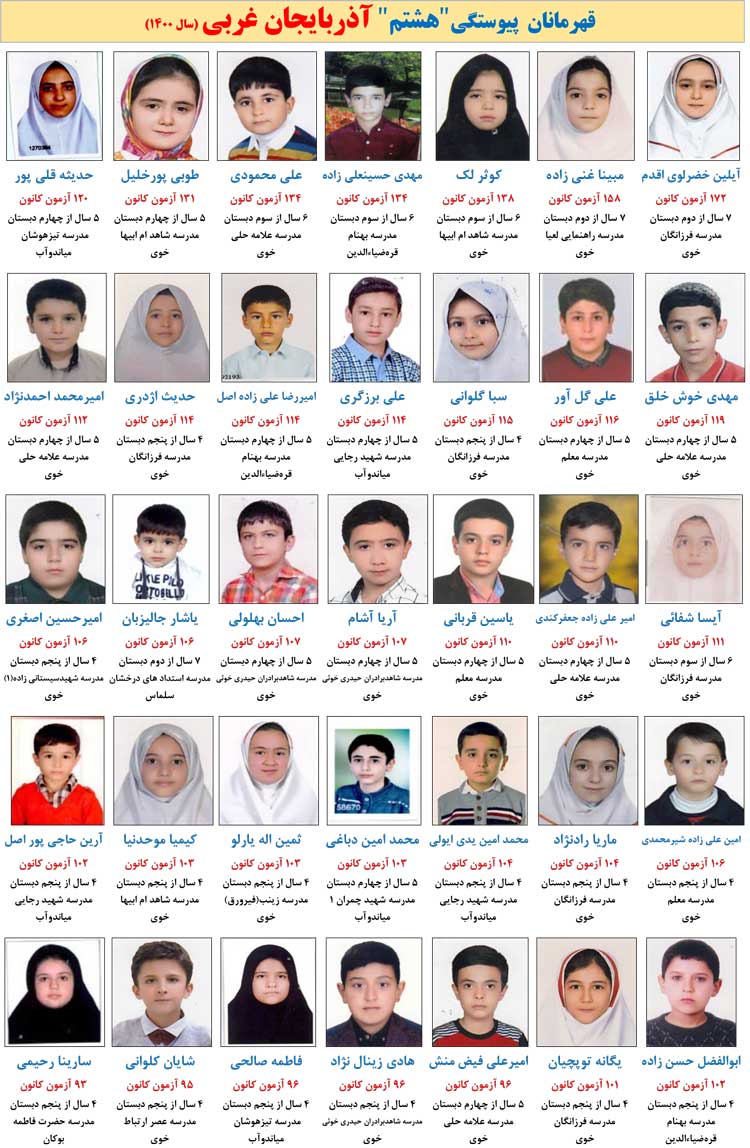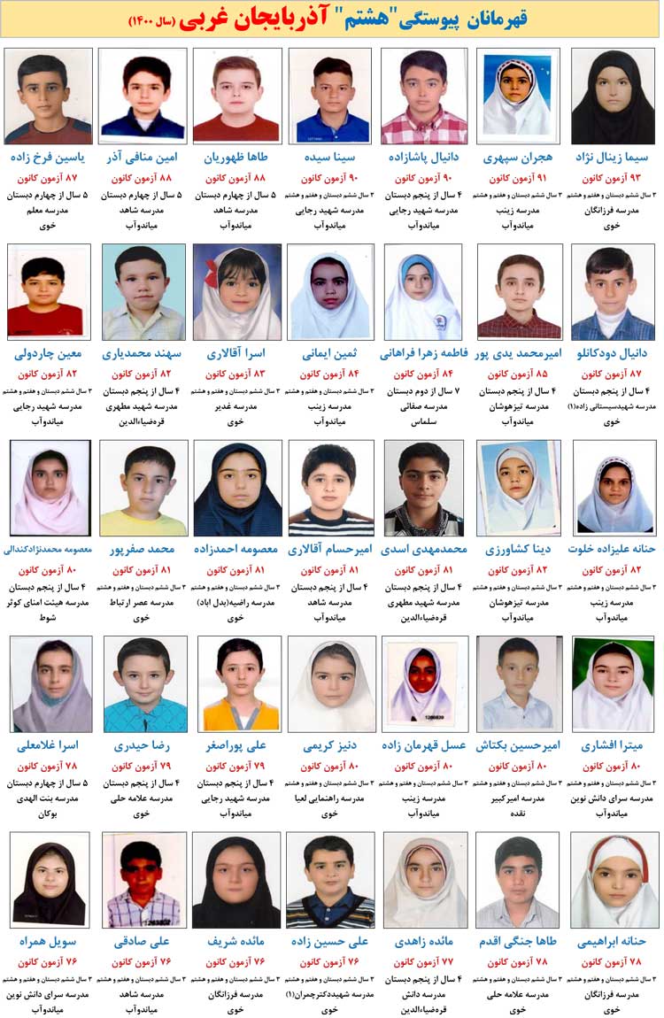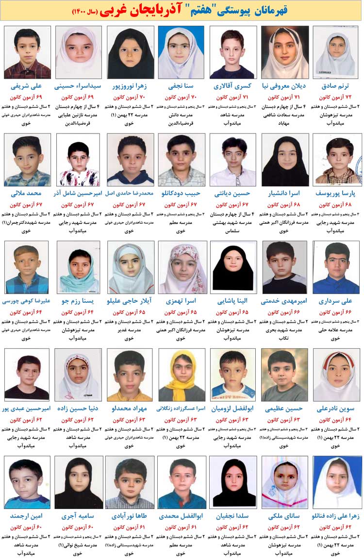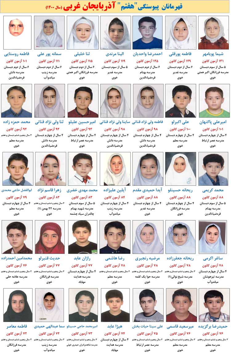 این دانش آموزان در بیش از 15 آزمون کانون حضور داشته اند . لیست اعلام شده مربوط به گروه های نهم ، هشتم ، هفتم و دبستان است.