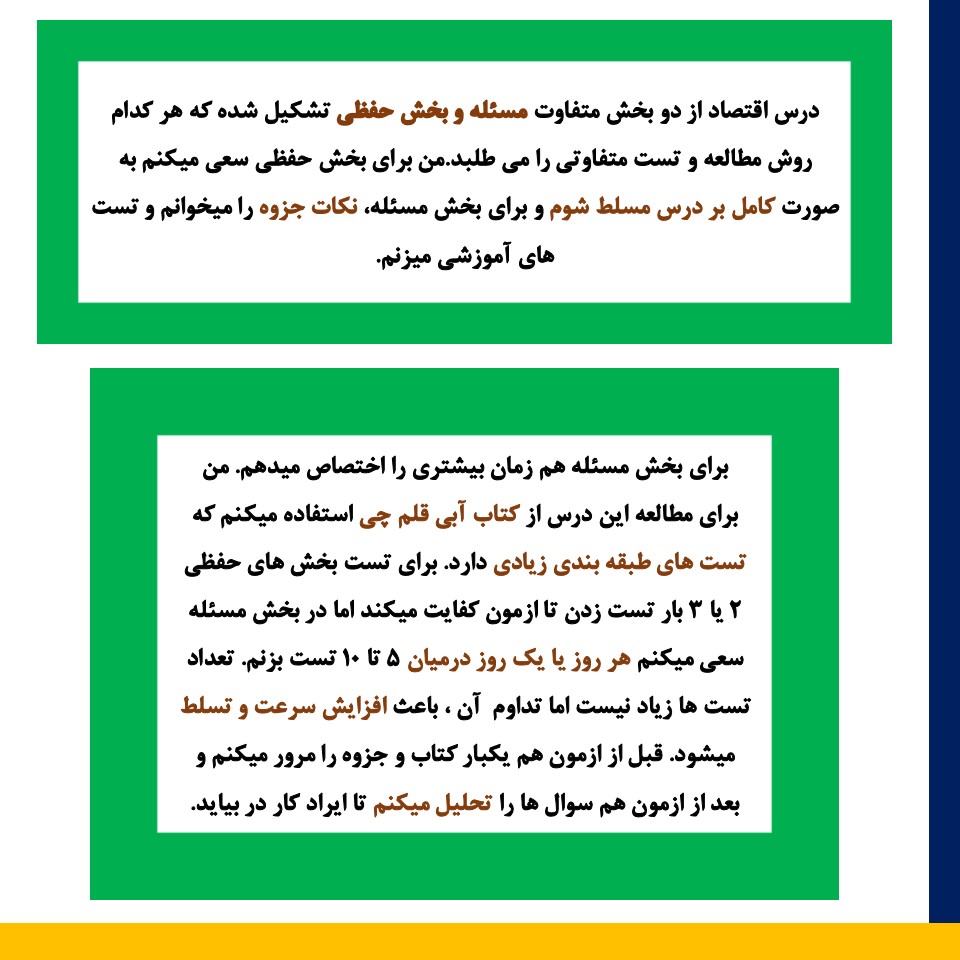 شما اقتصاد را چگونه مطالعه می کنید؟! آیا در مطالعه این درس روش خاصی دارید ؟! در قسمت کامنت ها یادداشت کنید.