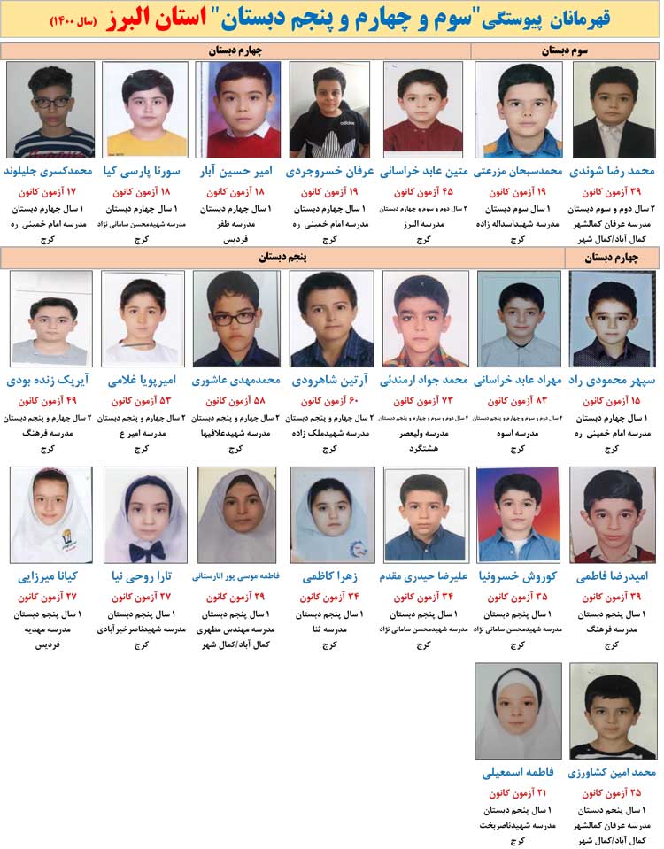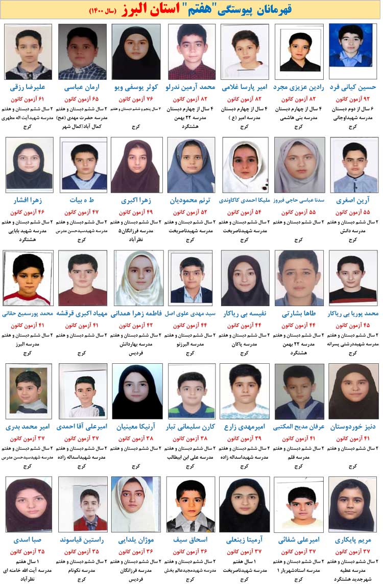 این دانش آموزان در بیش از 15 آزمون کانون حضور داشته اند . لیست اعلام شده مربوط به گروه های نهم ، هشتم ، هفتم و دبستان است.