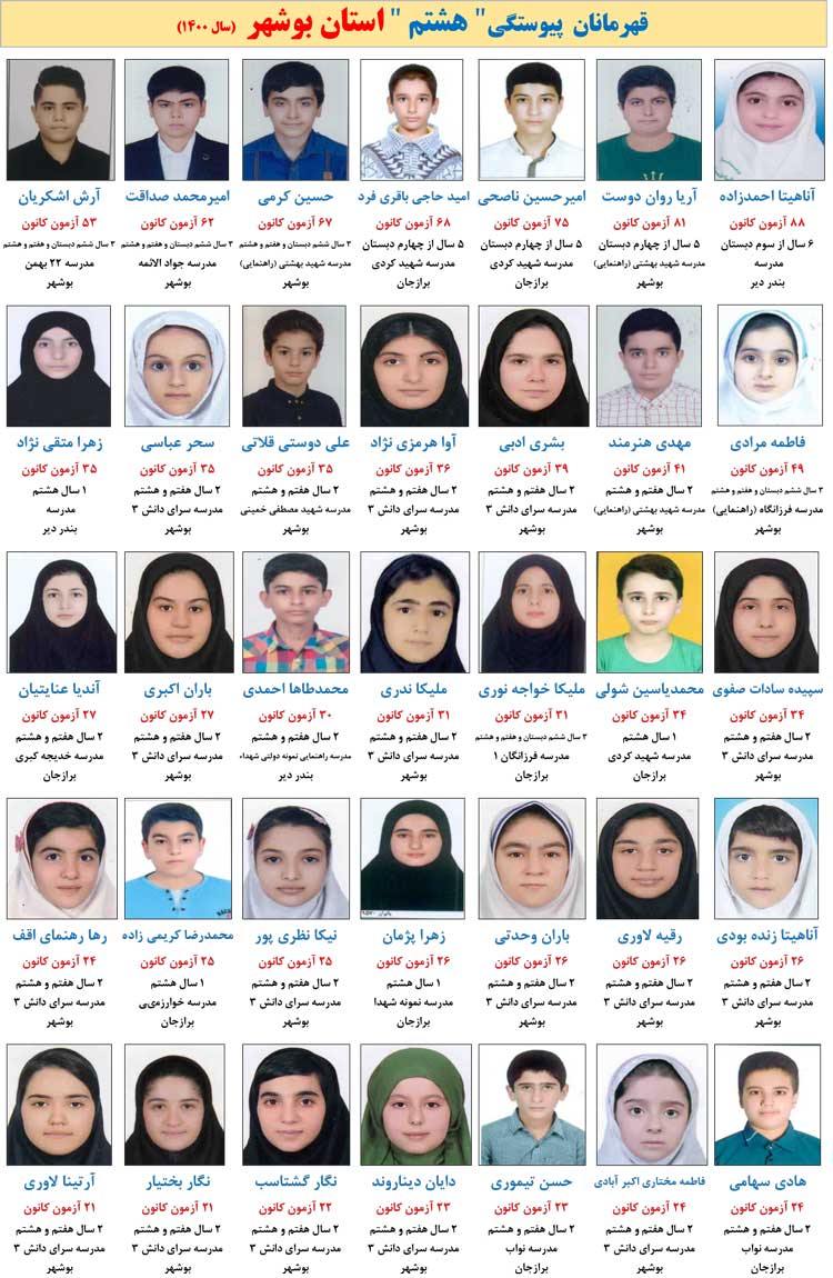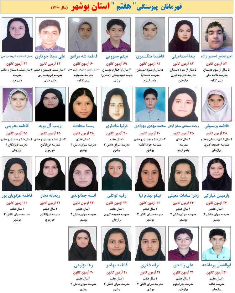 این دانش آموزان در بیش از 15 آزمون کانون حضور داشته اند . لیست اعلام شده مربوط به گروه های نهم ، هشتم ، هفتم و دبستان است.