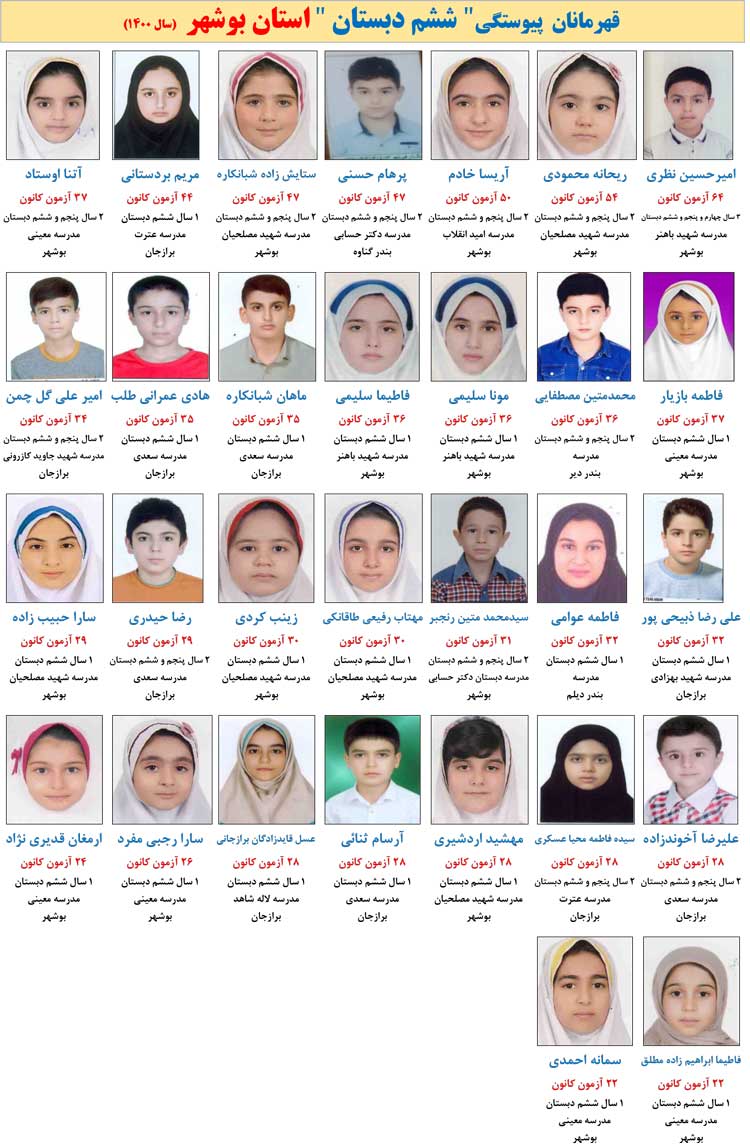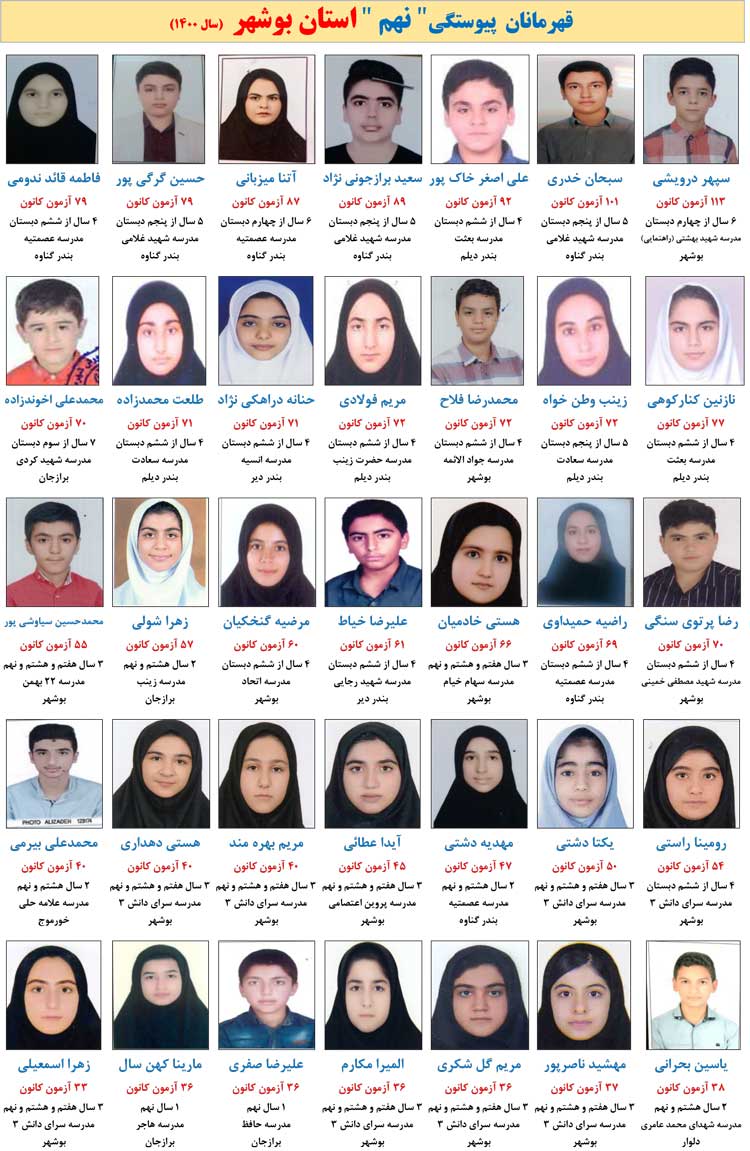 قهرمانان پیوستگی استان بوشهر را در این مطلب مشاهده می کنید .