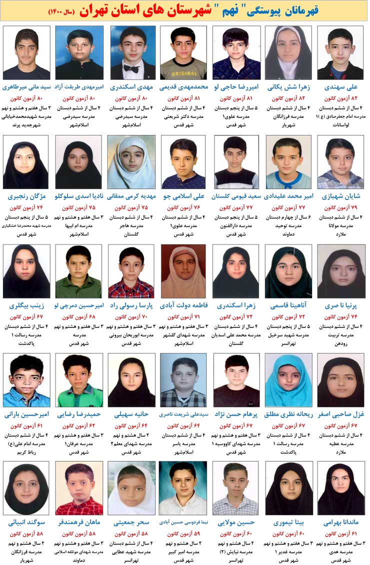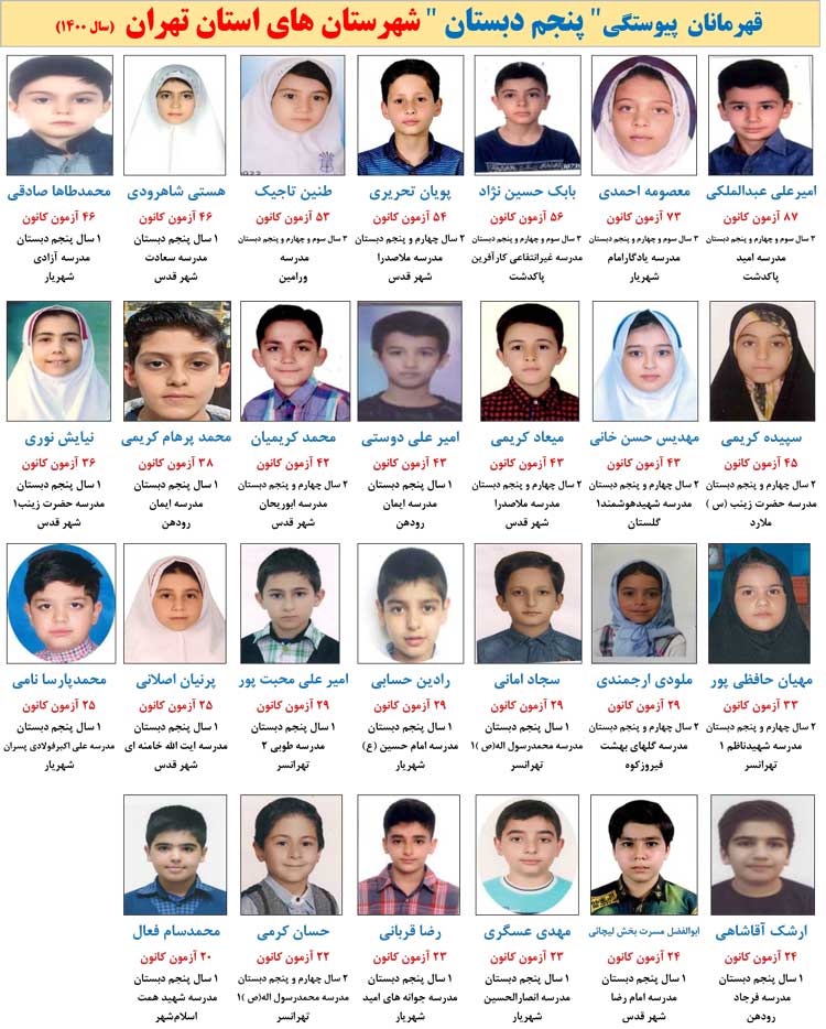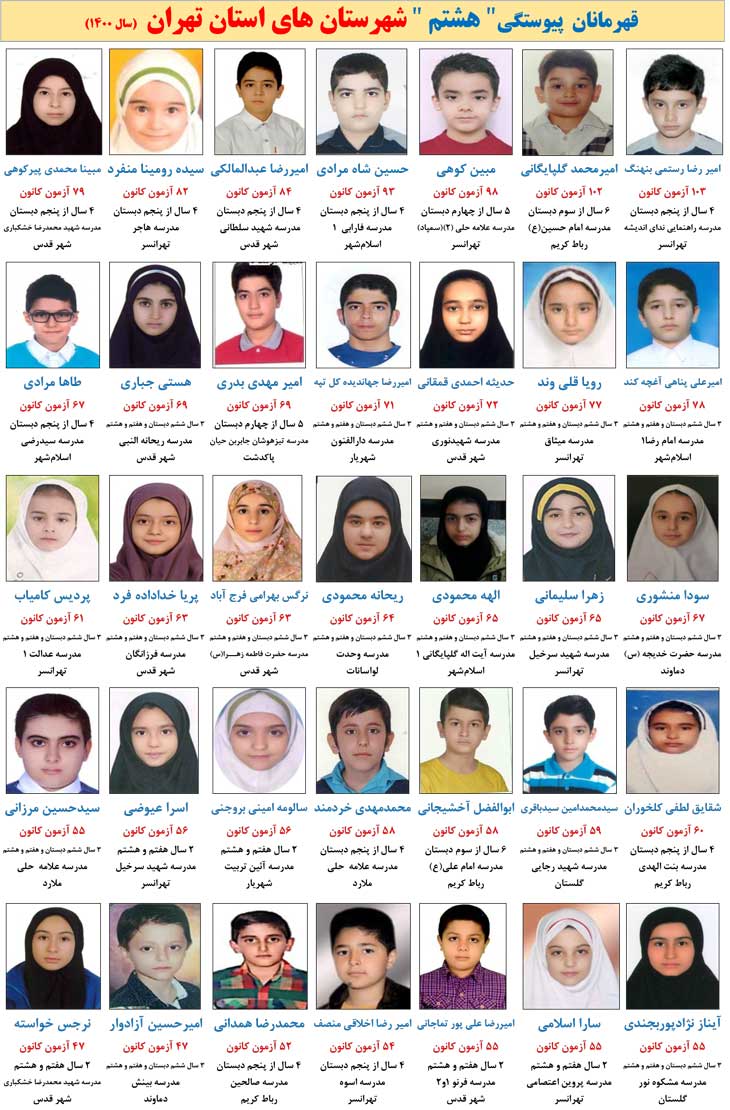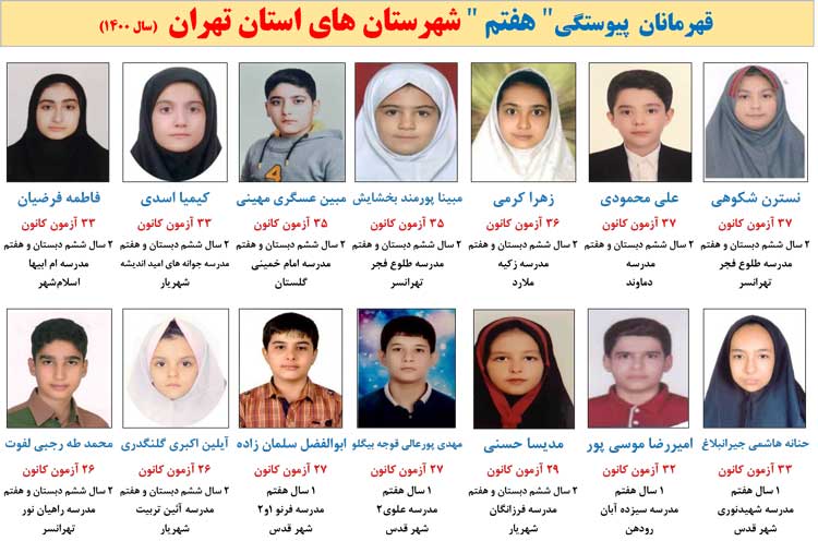 این دانش آموزان در بیش از 15 آزمون کانون حضور داشته اند . لیست اعلام شده مربوط به گروه های نهم ، هشتم ، هفتم و دبستان است.