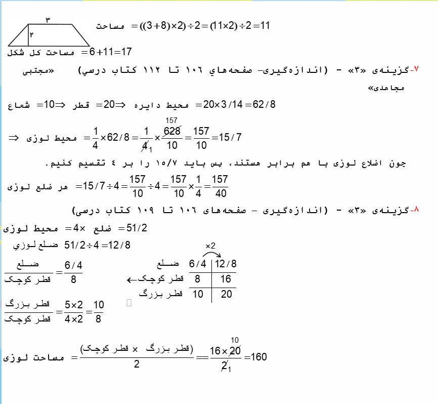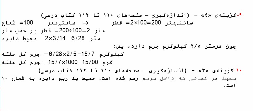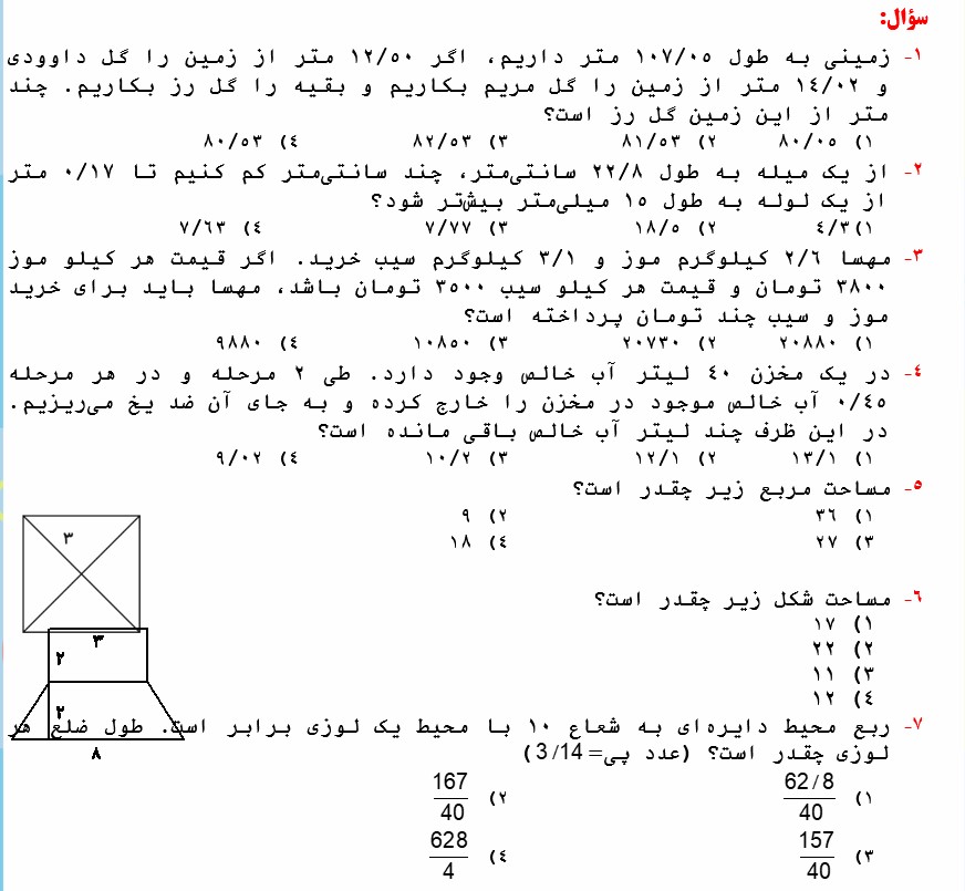 نمونه سوالات ریاضی پنجم دبستان + پاسخ کانون قلم چی