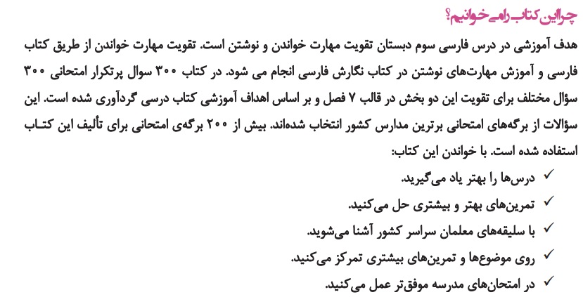 چاپ جدید کتاب سوالات پرتکرار امتحانی فارسی سوم دبستان