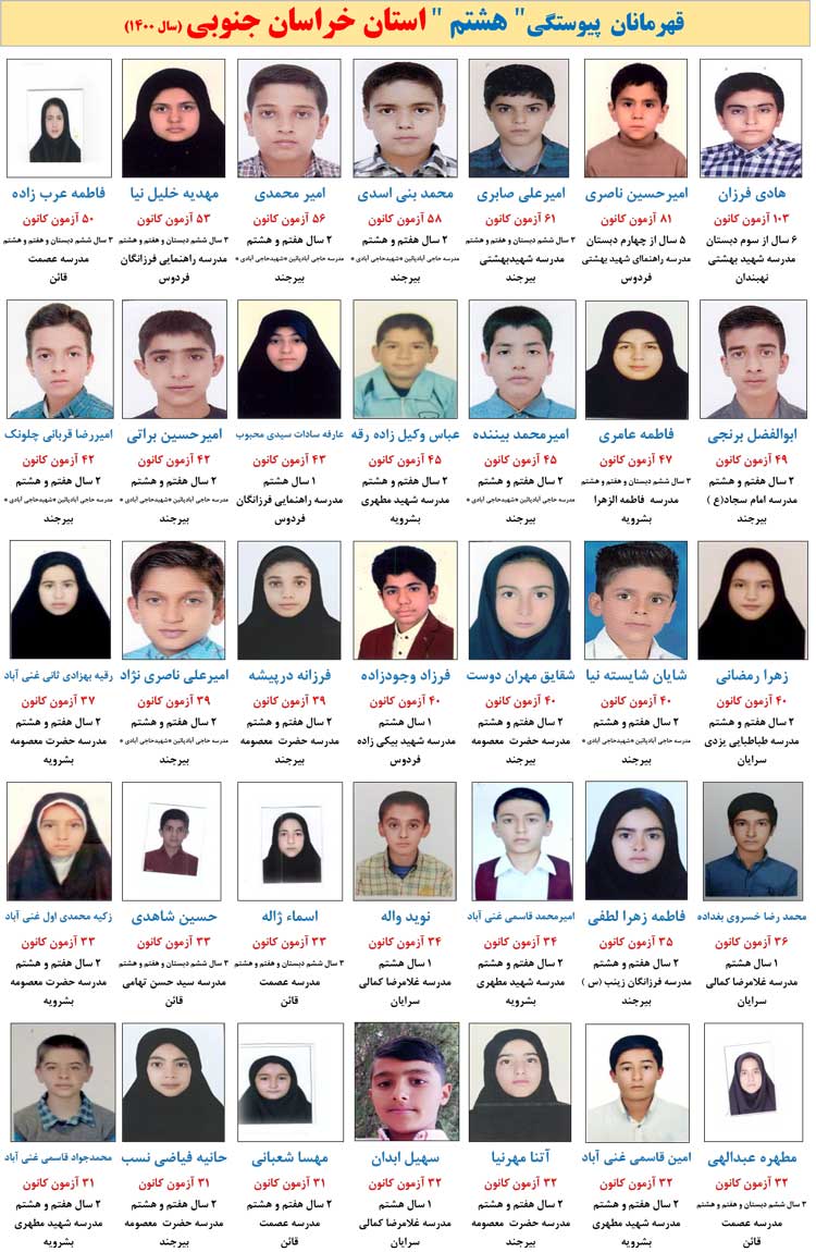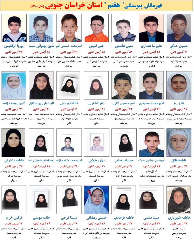 این دانش آموزان در بیش از 15 آزمون کانون حضور داشته اند . لیست اعلام شده مربوط به گروه های نهم ، هشتم ، هفتم و دبستان است.