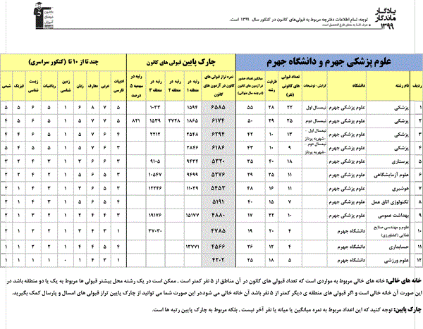 یادگار ماندگار : قبولی های کانونی دانشگاه علوم پزشکی جهرم و دانشگاه جهرم در همه رشته ها در سال 99 را در ادامه مشاهده کنید.فایل با کیفیت قبولی های سال 99 را در قسمت فایل های ضمیمه دانلود کنید.