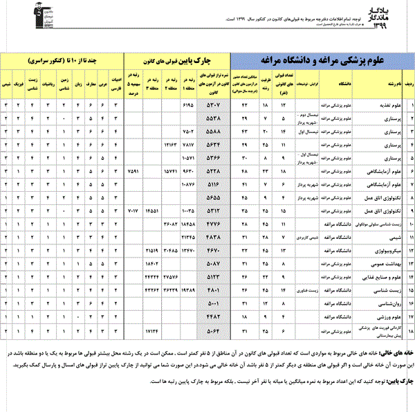 یادگار ماندگار : قبولی های کانونی دانشگاه علوم پزشکی مراغه و دانشگاه مراغه در همه رشته ها در سال 99 را در ادامه مشاهده کنید.فایل با کیفیت قبولی های سال 99 را در قسمت فایل های ضمیمه دانلود کنید.